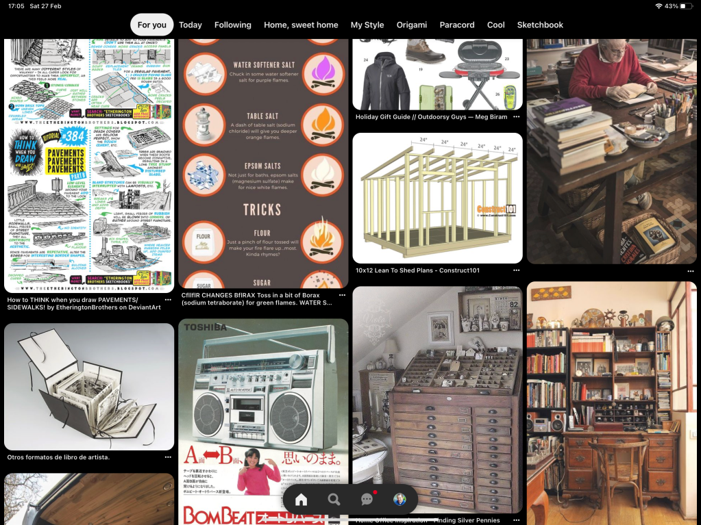 Pesquiso sobre cadernos. Sobre fotografia (com filme). Sobre computadores antigos. Sobre materiais de pintura e desenho. O maior problema é ter mais interesses do que tempo suficiente para me dedicar a todos eles, mas assim vou, alimentando meu vício de tempos em tempos.