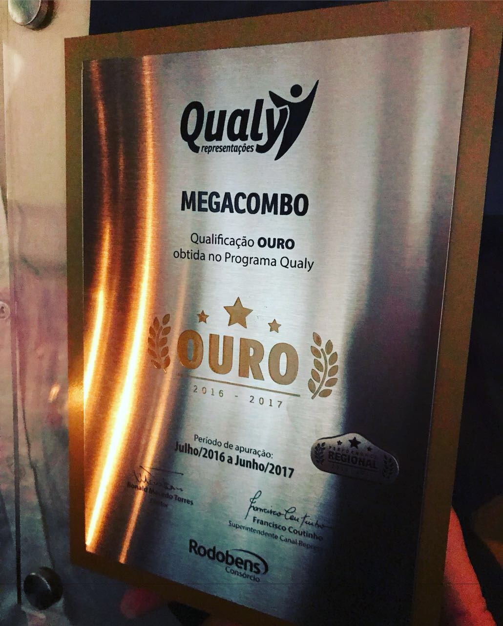 Placa do Prêmio Qualy Ouro 2017